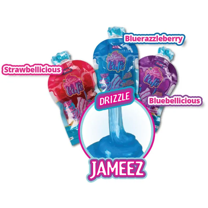Slimi café toppings, alt du behøver for å gjøre det morsomme enda festligere med Slimi cafés starter settene. De såkalte toppingene finnes i tre ulike varianter – Jameez, FluffiWhipz og Swirleez som finnes i tre ulike farger av hver. Jameez er i en syltetøyaktig konsistens og finnes i fargene Blue razzleberry, Strawbellicious og Bluebellicious. FluffiWhipz minner om spraykrem og finnes i fargene Minterrific, Veryberry og Tangerini. Sist, men inte minst har vi Swirleez som ligner en karamellsaus som kan formes, i fargene Lemonitwist, Razzleberry og Grapify. Når du har klemt ut og dekorert ferdig, kan du lett ta toppingene fra hverandre og putte dem tilbake i posene sine. I denne pakken får du 1 stk av typen Jameez Strawbellicious. NB! Ingen av delene til denne leken er spiselige. Anbefalt alder: 8+