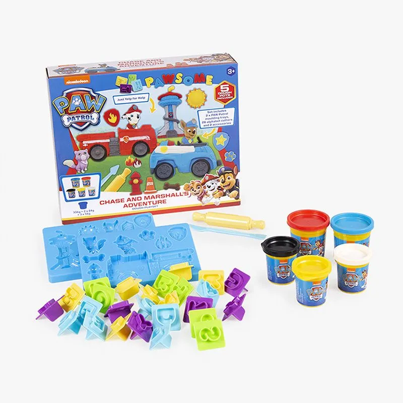 Lag din egen Paw Patrol-modelleringsvoksverden med dette fargerike og valpe-tastiske kjøretøysettet med Chase og Marshall. Modellleire settet bidrar til timevis av moro.
