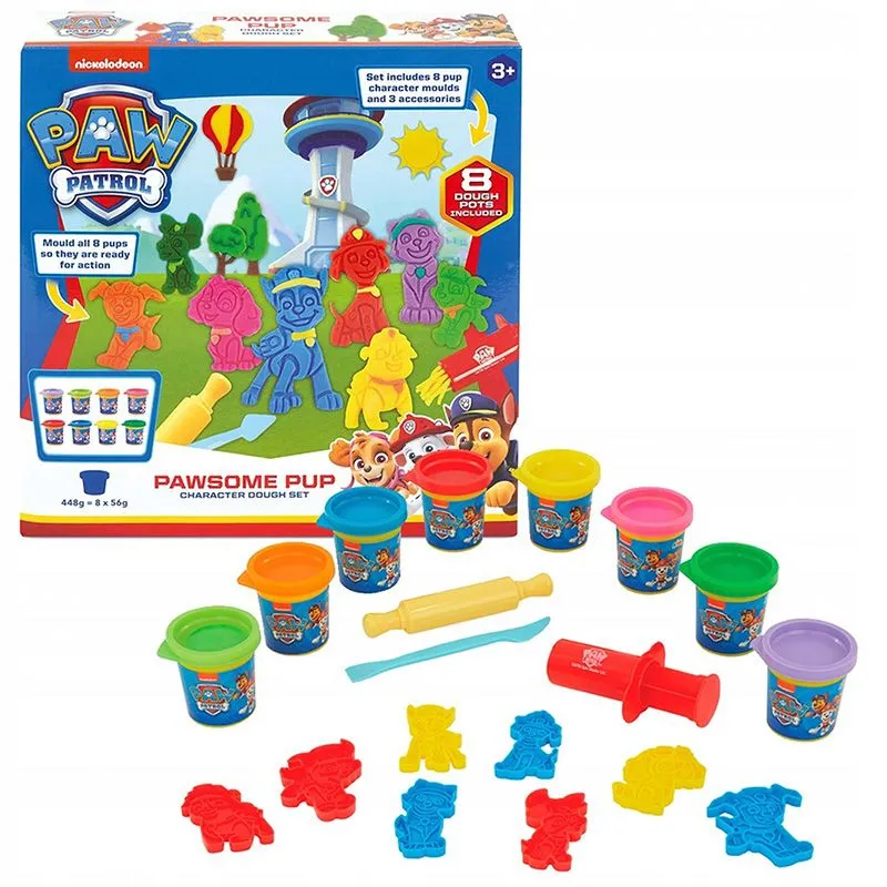 Form 8 av favorittvalpene dine fra Adventure Bay slik at de er klare for action! Dette fantasifulle settet er ideelt for små som elsker å finne på historier og lage morsomme scener, og gir en kreativ lekeaktivitet som barn vil elske. Chase drar på et spioneventyr, Marshall slukker branner og Skye er på et luftredningsoppdrag! Bruk den lyse og fargerike deigen til å fylle formene og avsløre valpen, og dekorer deretter valpen med de forskjellige verktøyene.