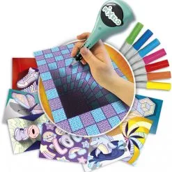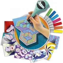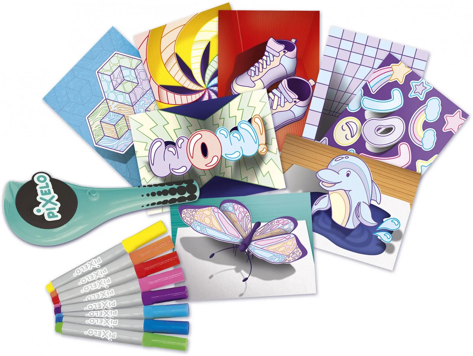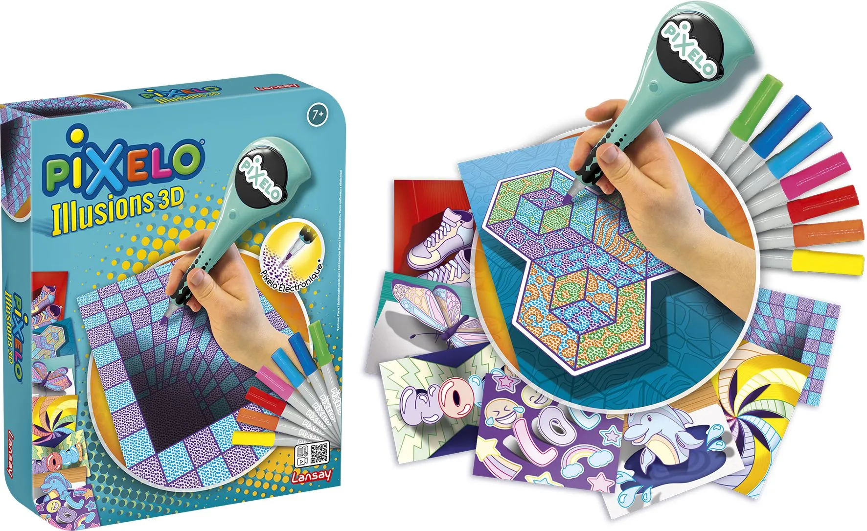 Lag vakre, fargerike design på et øyeblikk med den elektroniske Pixelo-pennen. Velg din illustrasjon og bruk din elektroniske Pixelo til å lage stiplede mønstre og gi tegningen din liv! Mange illusjoner å gjenskape med Pixelo! Du kan også bruke markøren på den klassiske måten for å fullføre tegningen.