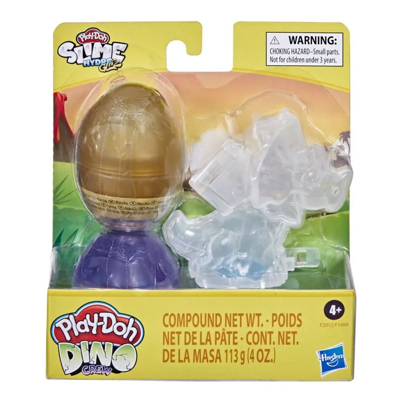 Grav deginn i moroa og lag din egen dinosaur med Play-Doh Dino Crew dinosaureggene! Hvert egg er fylt med det glatte Play-DohHydroGlitz slimet og dinosaurskjelett. Sett sammen skjelettet og fyll dinosaur formen med HydroGlitz slimet for å lage din egen triceratops!