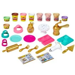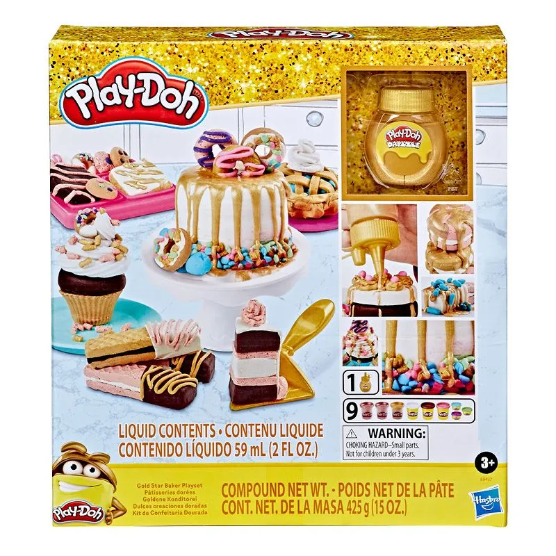 Imponer fantasien med gullinspirerte Play- Doh desserter! Barn kan føle seg som gourmet bakere og lage herlige kaker, muffins og andre luksuriøse kreasjoner med dette gull Play- Doh leiresettet. Lag Play- Dog frosting med gull eller rosegull farge og se hvor luksuriøse bakverkene blir!