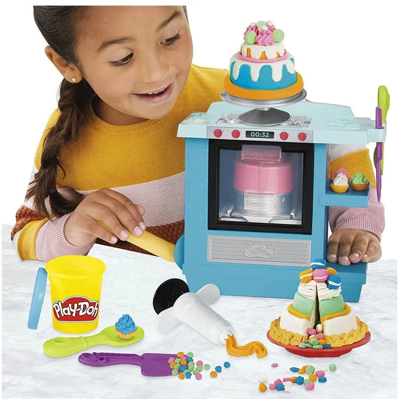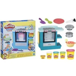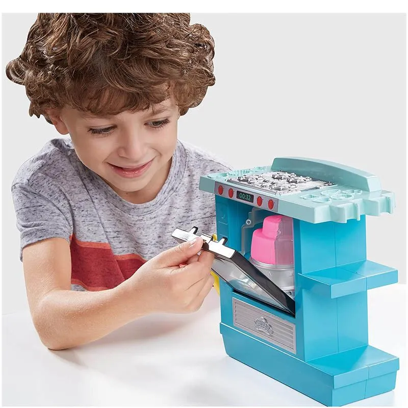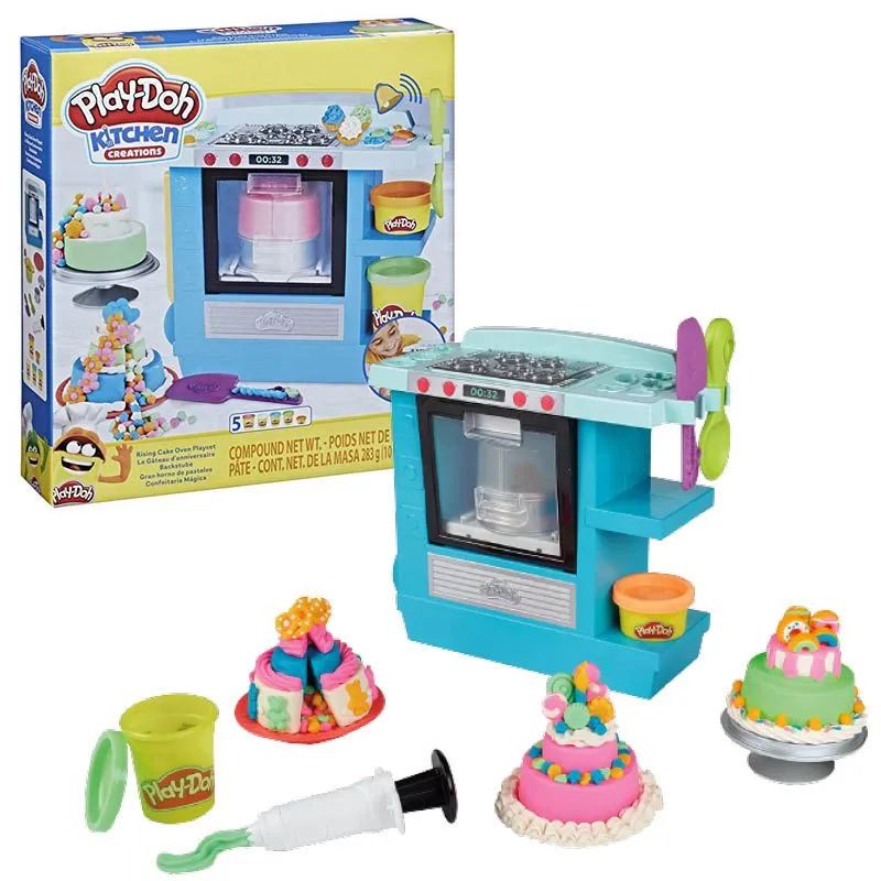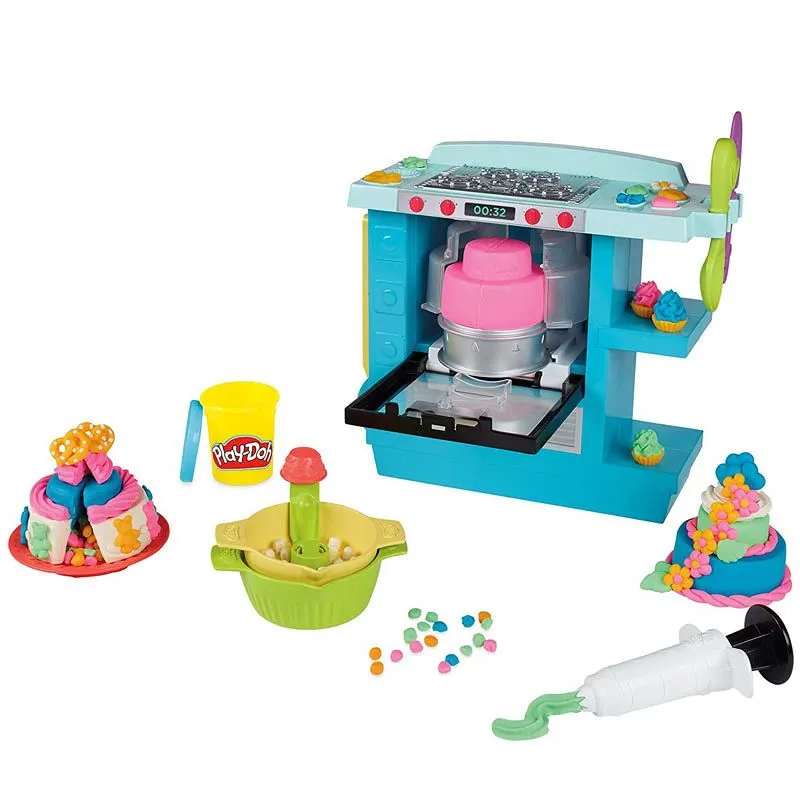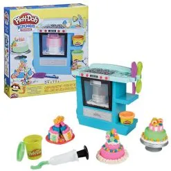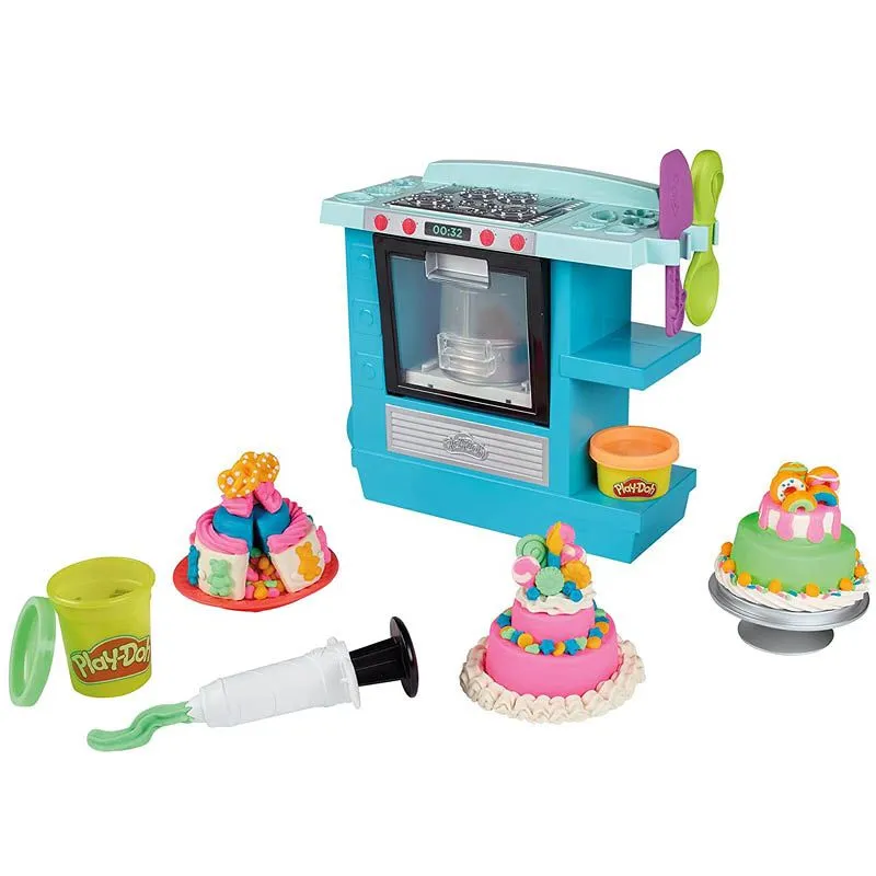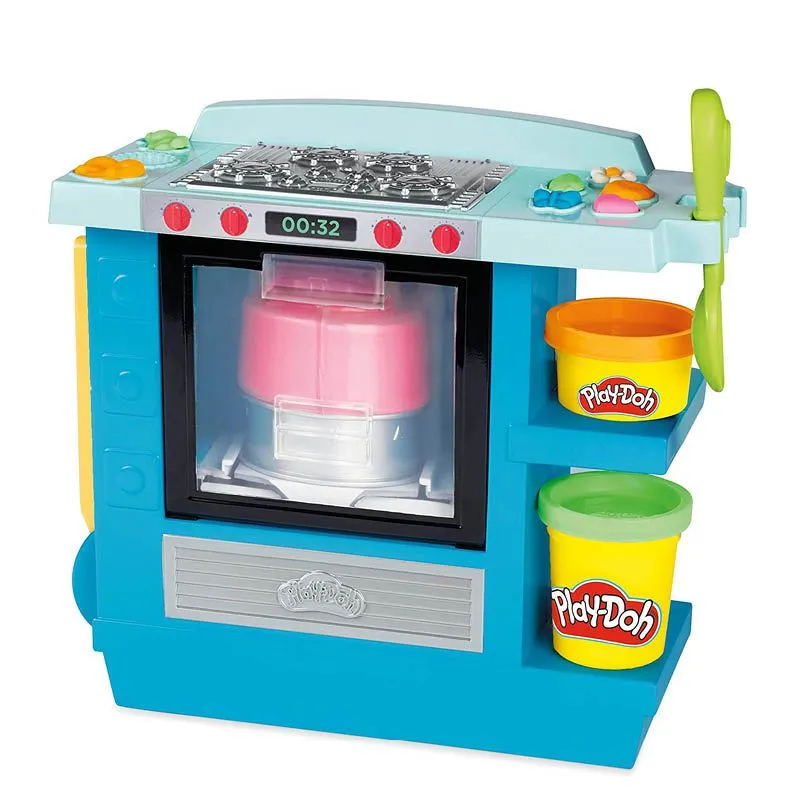 Få utrolige Play-Doh-kaker til å heve forann øynene dine med Play-Doh Kitchen Creations komfyr lekesettet! Tilsett Play-Doh i kakeformen, stek den i ovnen, trekk ned håndtaket og se den heve. Når kaken din er klar, gir ovnen beskjed!