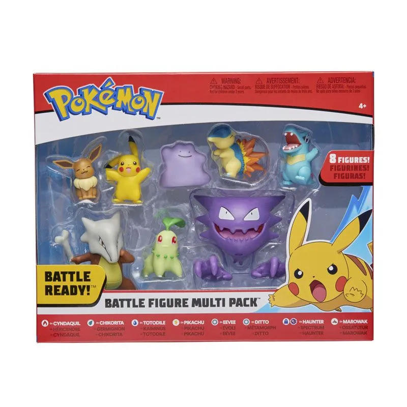 Pokémon Battle Figure multi pack gir deg hele 8 forskjellige pokemon figurer! Vinn kamper med den elektriske pokémonen Pikachu eller ild pokémonen Cyndaquil. Bruk gress pokémonen Chikorita eller en av vann-type pokemonen Totodile. Du får også med Eevee, Ditto, Haunter og Marowak. Kombiner gjerne med andre Pokémon Battle figurer (selges separat).