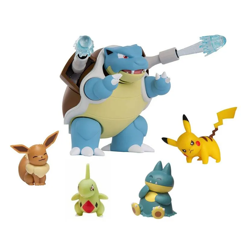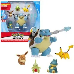 Pokémon Battle Figure multi pack gir deg 5 stilige pokémon figurer! Sett den mektige vannpokémonen Blastoise ut i kamp og skyt de to vannkanonene fra ryggen.Kjemp med den elektriske pokémonen Pikachu, eller bruk den stilige Eevee, Munchlax eller Larvitar.