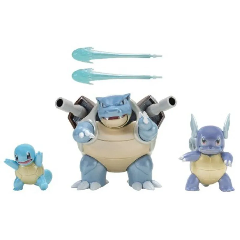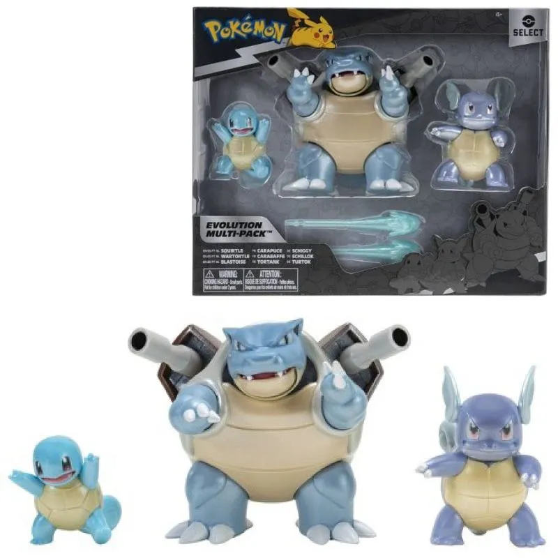 Samle hele Evolution-serien av favoritt-Pokémonene dine med denne Select Evolution-pakken! Først, vis og fest deg med Squirtle, en original First Partner Pokémon. Tren deretter med Wartortle, som har justerbare ledd for dynamisk posering. Send deretter Blastoise ut i kamp og skyt av rakettkasteren! Til slutt, still dem opp sammen og vis frem deres spesielle finish som er unike for Select Evolution Packs. Disse svært detaljerte figurene ser ut som de hoppet rett ut av Pokémon Animated Series, og er offisielt lisensiert av Jazwares. Passer for alderen 4 år og oppover.