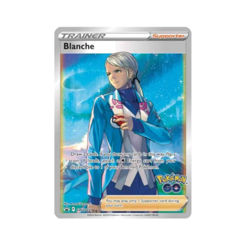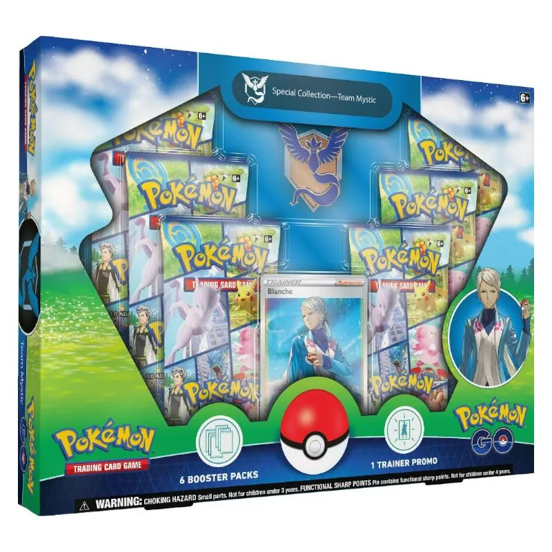 Ingenting slår å utforske verden med lagkameratene ved din side! Fortell stolt andre trenere hvilket lag du er på med den iøynefallende Team Mystic-nålen i denne samlingen. Du finner også Blanche, lederen av Team Mystic, som et spillbart supporterkort som hjelper deg med å trekke kort og få energi i spill, pluss en stabel med boosterpakker fra den spesielle Pokémon GO-utvidelsen.