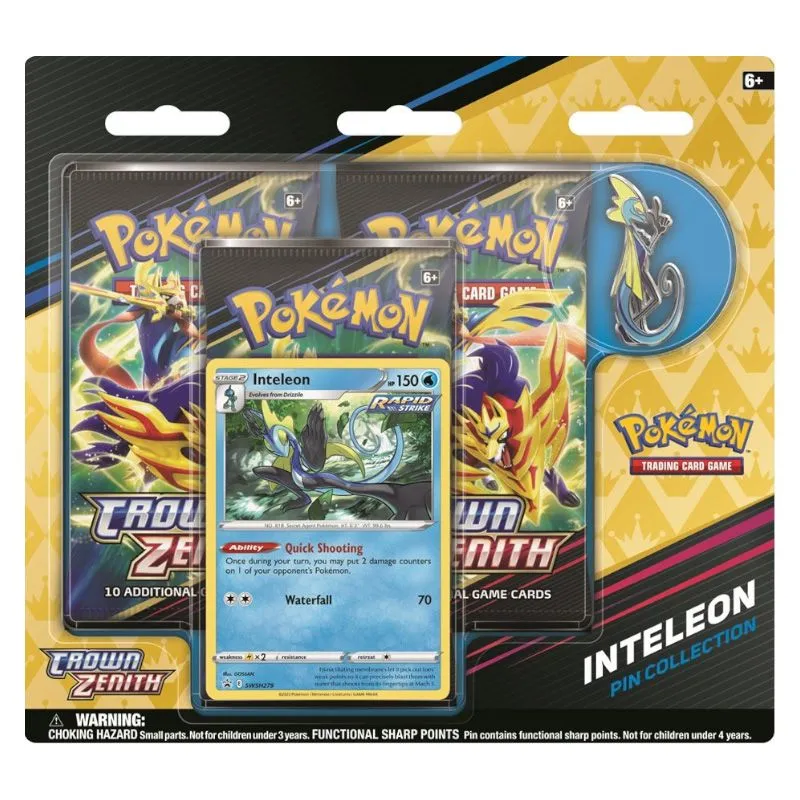 Fang en regions verdi av minner og vis verden hvor langt du har kommet med en blank emaljenål med en av Galars fullt utviklede første partner Pokémon! Du vil også finne et promokort som er klart til å spille med Inteleon – pluss et sett med boosterpakker fra den spesielle Crown Zenith-utvidelsen for å forbedre samlingen din. Hvis du er en fan av Rillabooms trommekraft, Cinderaces glatte bevegelser eller Inteleons stealth, er det en fin måte å vise det frem på.