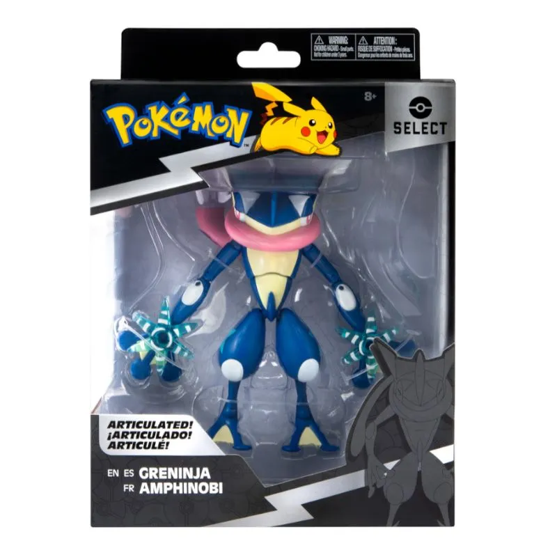 Vann/mørk-type Pokémonen Greninja kommer med flotte detaljer og er det perfekte tillegget til enhver Pokémon trener! Den 15 cm høye Greninja kommer med hele 15+ artikulasjonspunkter slik at du kan possere den både for fremstilling og til kamp! Det praktiske stativet gjør det enda lettere å stille Greninja opp, slik at den alltid er klar til å gjenskape dine favoritt øyeblikk fra tv-serien!