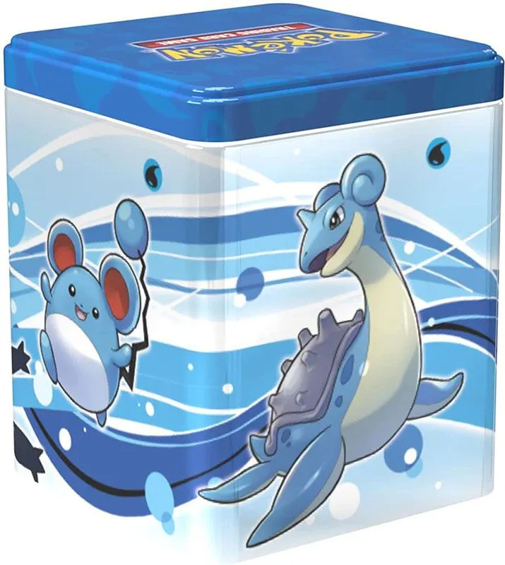Kjekk Pokemon tinnboks som kan stables i høyden. I denne serien finnes det tre varianter. Denne som er vann type, samt en grønn boks som er gresstype og en gul som er elektrisk type. Grønn og gul boks selges seperat.