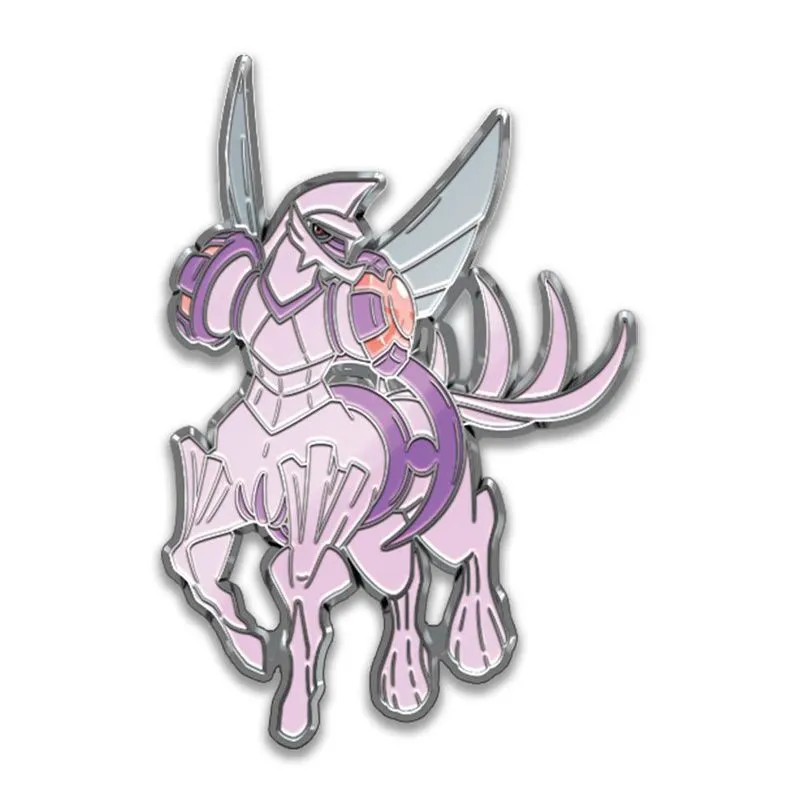 Origin Forme Palkia VSTAR svever over himmelen og vender på verdensrommets stoff for å gi styrket kraft til laget ditt! Det viser seg her både i spillbare og store versjoner, når denne eldgamle legendariske Pokémonen har en VSTAR Kraft som lar deg knytte an forkastet energi til din Pokémon. Du vil kunne få det i spill ved hjelp av Origin Forme Palkia V og flere kort du finner i Pokémon TCG Booster pakkene. En avrunding til denne deluxe samlingen – en emaljert pin som viser frem Temporal Pokémon i all sin makt.