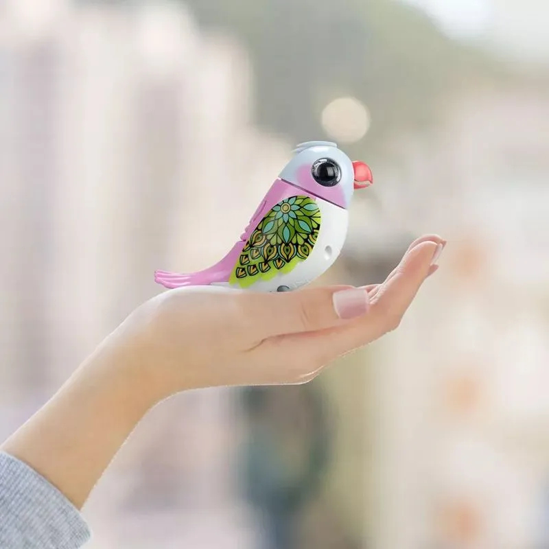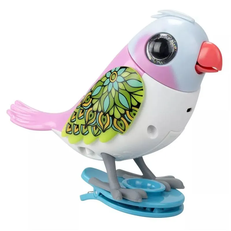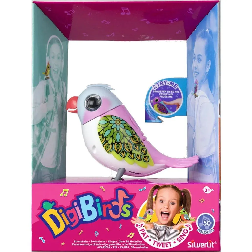 Digibirds sangfugl i hvit og rosa med 50 melodier og bevegelig hode og nebb.