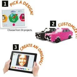Forvandle vanlige bilder til kule og spennende pixelmotiver i både 2D og 3D. Ved hjelp av en gratis app og en smartphone forvandler du fotografiene dine til bilder bestående av 32 X 32 pixler som via bluetooth overføres til Pixelatoren som har dioder som lyser opp i pixelbildets motiv og farger! Settet inneholder alt du trenger for å komme igang og er klar til bruk rett fra esken! SD-kortet inneholder 50 ulikte trinn-for-trinn prosjeketer. Med i settet følger også over 1000 pixel-perler, og strømadapter. Pixelatoren kan også bruke 4 stk C-batterier slik at du kan ta den med hvor som helst. Anbefalt alder fra 7 år.