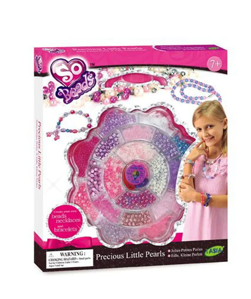 Et kjekt perlesett for alle de som liker Ä lage smykker. Settet bestÄr av et blomsterformet skrin med bÊrehÄndtak, fylt med perler i mange flotte farger. I senter av skrinet finner en 10 meter nylonbÄnd til Ä tre perlene pÄ samt smykkelÄs.. Passer fra 7 Är+