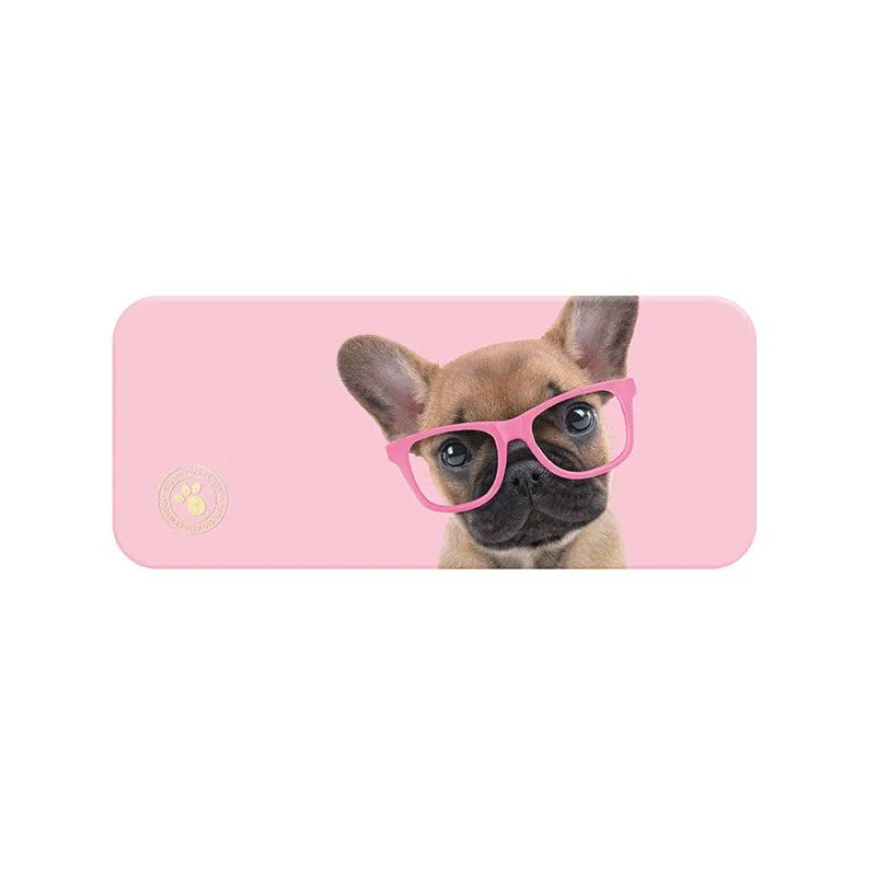 Stilig pennal i metall fra Studio Pets med motiv av den søte hunden Freddy.