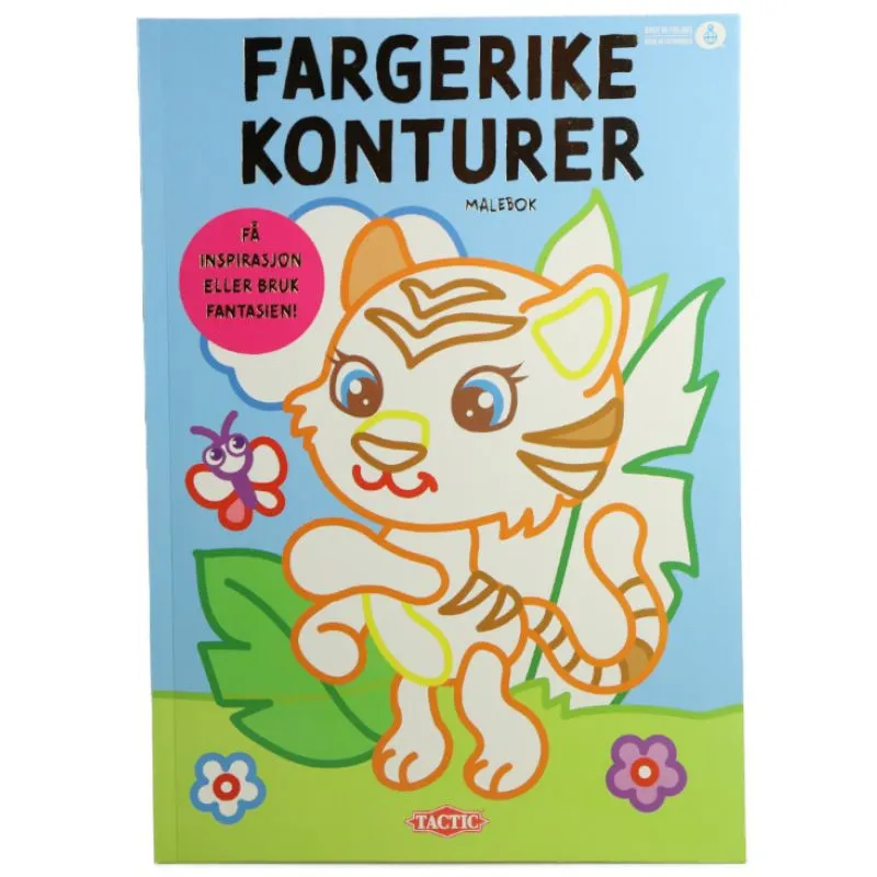 Inspirerende flerfargede konturer får barn til å legge til enda mer farge på bildene. Bruk de fargene du ønsker, eller bruk fargene på konturene som inspirasjon. Noen av bildene er fine og enkle, noen av dem er lit mer detaljerte, så fargeentusiaster i alle aldre kan finne underholdende utfordringer.