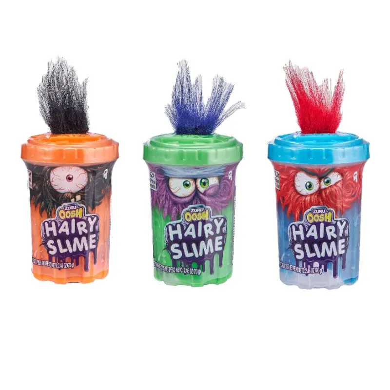 Slimete, ooey og gooey og nĂ„âŠ. HĂ RETE. OOSH Slim du kjenner og elsker kommer med en HĂ RETE vri. Denne fargerike slimen er giftfri og ikke klebrig! Tilgjengelig i tre forskjellige slimefarger og hver med sin egen sprĂž hĂ„rfarge. Det er ikke alt! Hairy Slime har ikke bare hĂ„r, men den har ogsĂ„ skjulte insekter inni. Strekk slimet for Ă„ finne kakerlakker, fluer og edderkopper blandet inn i det hĂ„rete slimet. Ikke bekymre deg, hĂ„ret faller ikke av, og insektene vil ikke bite deg!