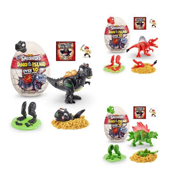 Grav ut din egen dinosaur med zuru Smashers Dino Island nå med over 10 overraskelser i dinosauregget. Dinosaureggene selges assortert i rød, sort og grønne dinosaurer.